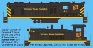 L-302 – Detroit & Toledo Shore Line GP7’s & SW’s Black Scheme