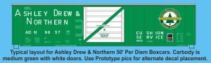 F-380 – Ashley Drew & Northern 50′ Per Diem Paper Loading Boxcars