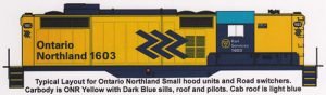 L-260 – Ontario Northland Blue & Yellow Small Hood Units and Roadswitchers