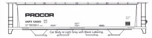 F-179 – PROCOR (UNPX) 4 Bay Cylindrical Hoppers Black & Blue Lettering