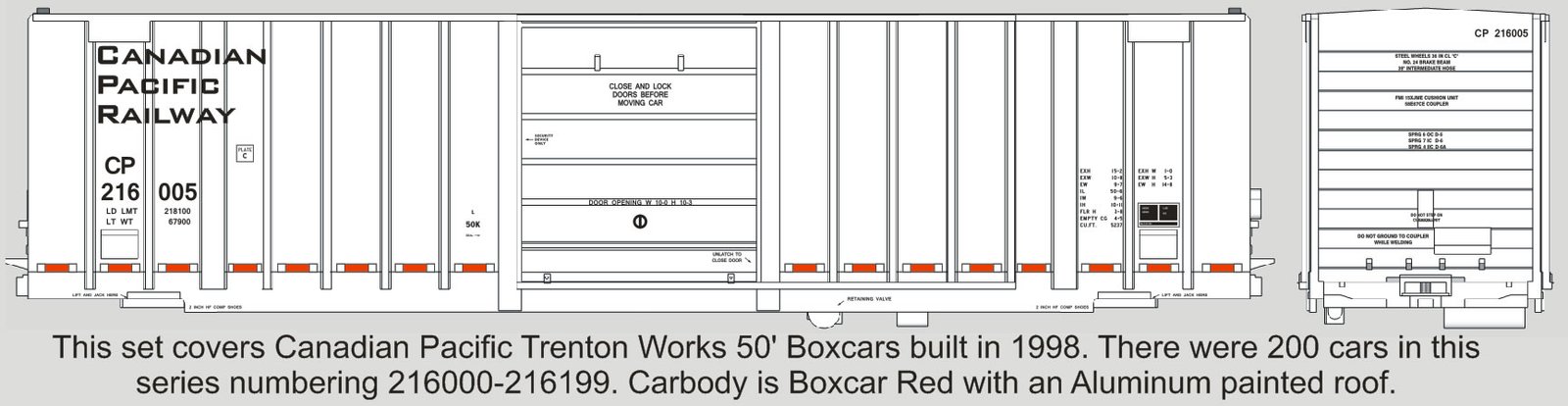F-394 – Canadian Pacific 216000-199 Trenton Works 5237 CUFT 50′ Boxcars