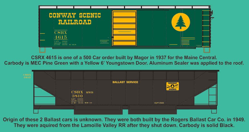 F-376 – Conway Scenic RR Ballast Cars 3810 & 3811, Boxcar 4615