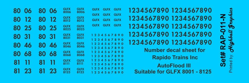 RAP-011 – GLFX Renumber set for Rapido AutoFlood III Coal Hoppers