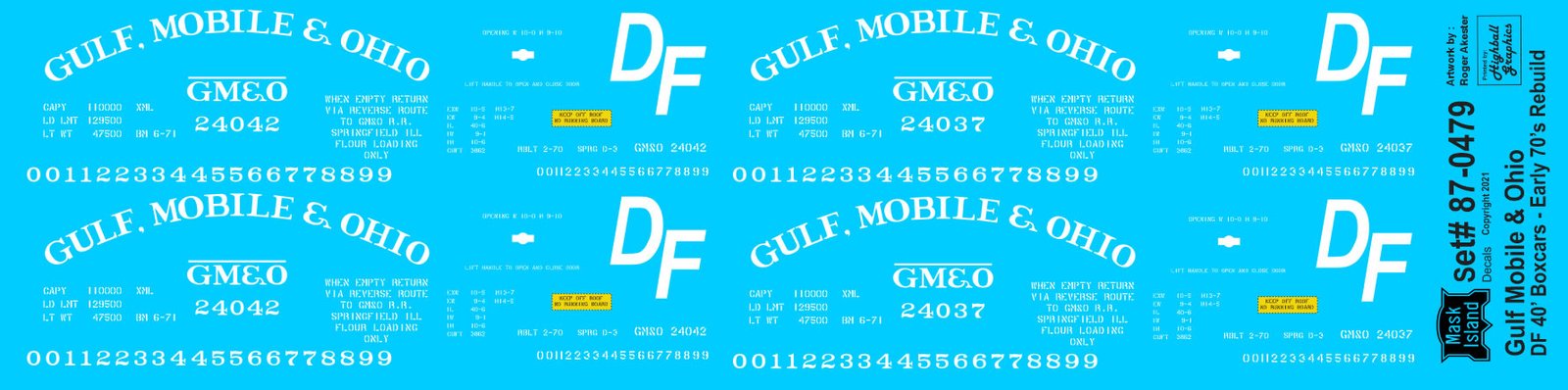 87-0479 – Gulf Mobile & Ohio DF 40′ Boxcars – Early 70’s Rebuild