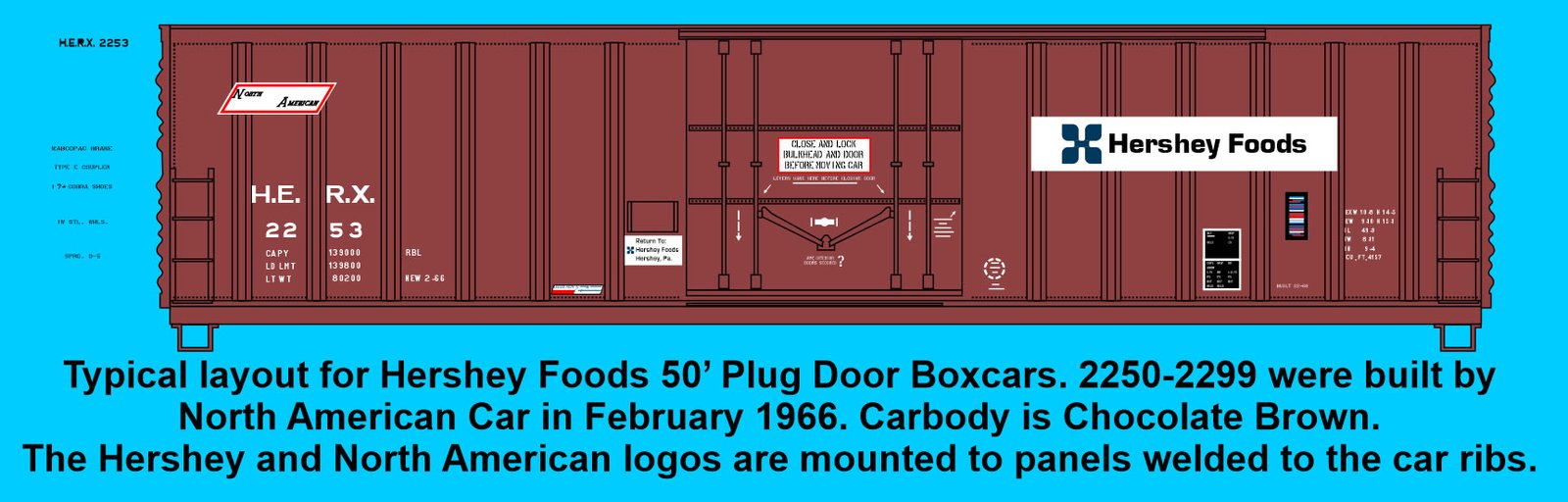 F-428 – Hershey Foods NAC 50′ Boxcars #2250-2299 Late Scheme