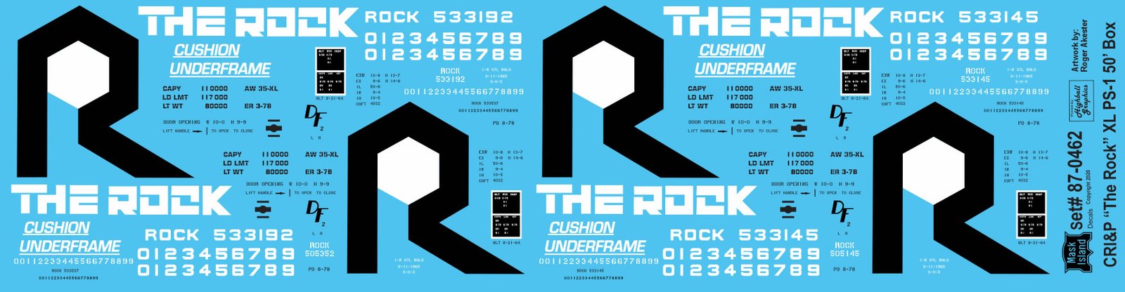 87-0462 – Rock Island Blue XL PS-1 50′ Boxcars