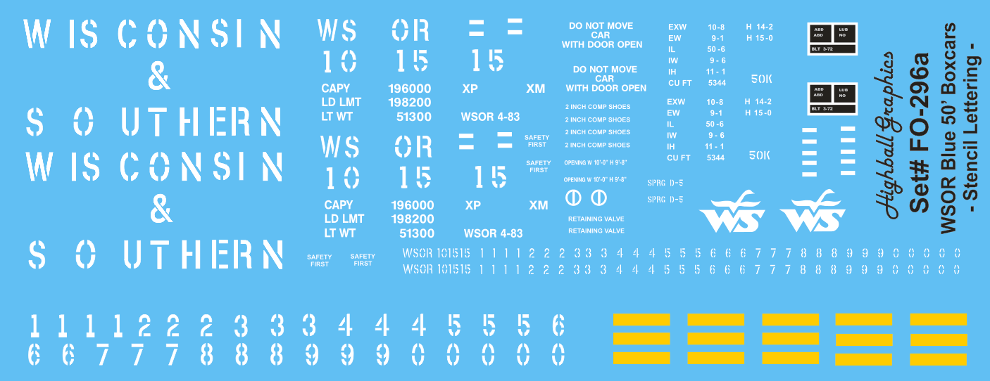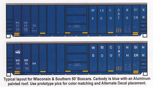 FO-296a – Wisconsin & Southern Blue 50′ Boxcars – Stencil